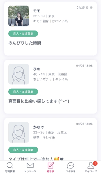 マリッシュの場合はマッチングアプリなので掲示板機能は存在せずに、気軽に相手を募集する機能はありません。